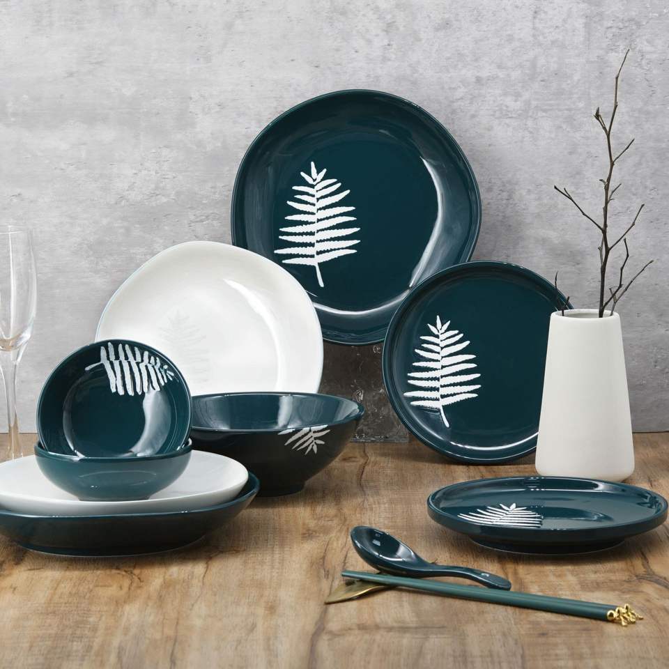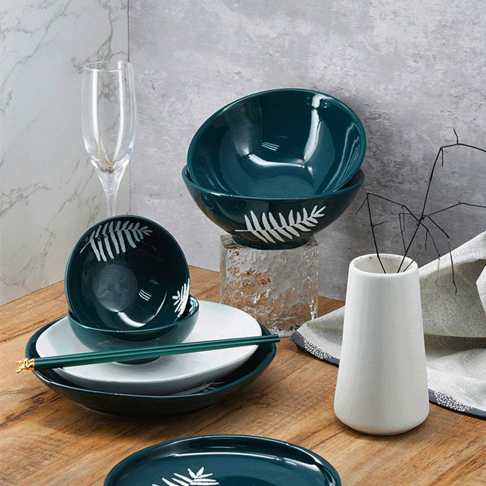 Juego de Vajilla de Cerámica Rectangular con Diseño de Hojas Verdes de Pavo Real, Apto para Microondas, para Fiestas