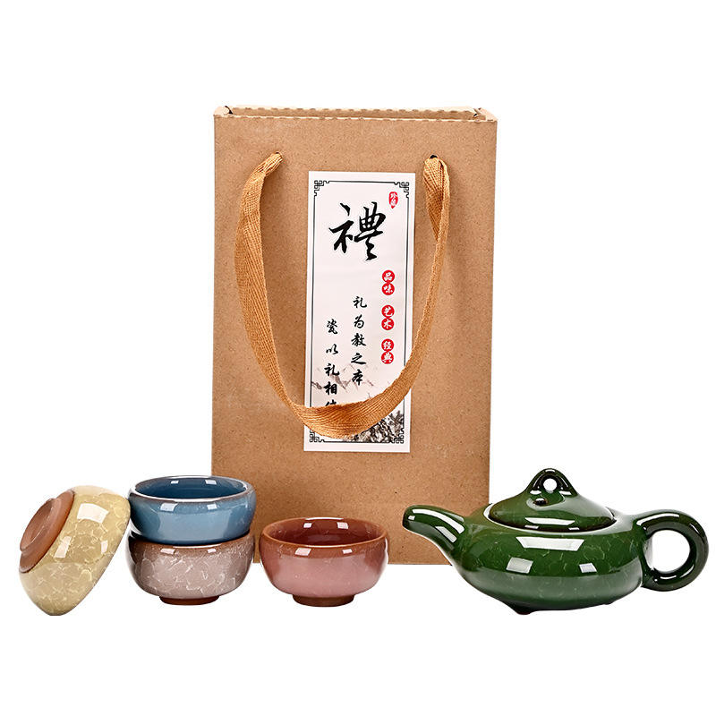 Juego de té de cerámica con tetera y cuatro tazas, esmalte craquelado, regalo para las celebraciones del Año Nuevo Chino
