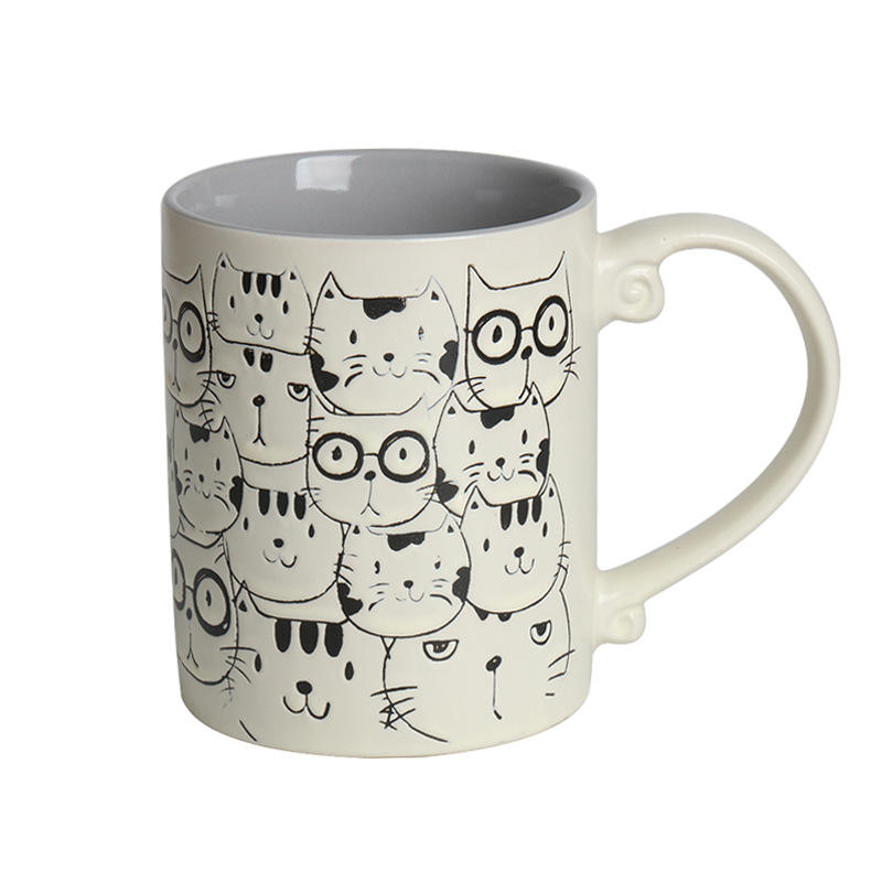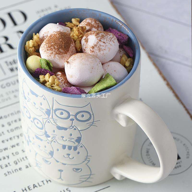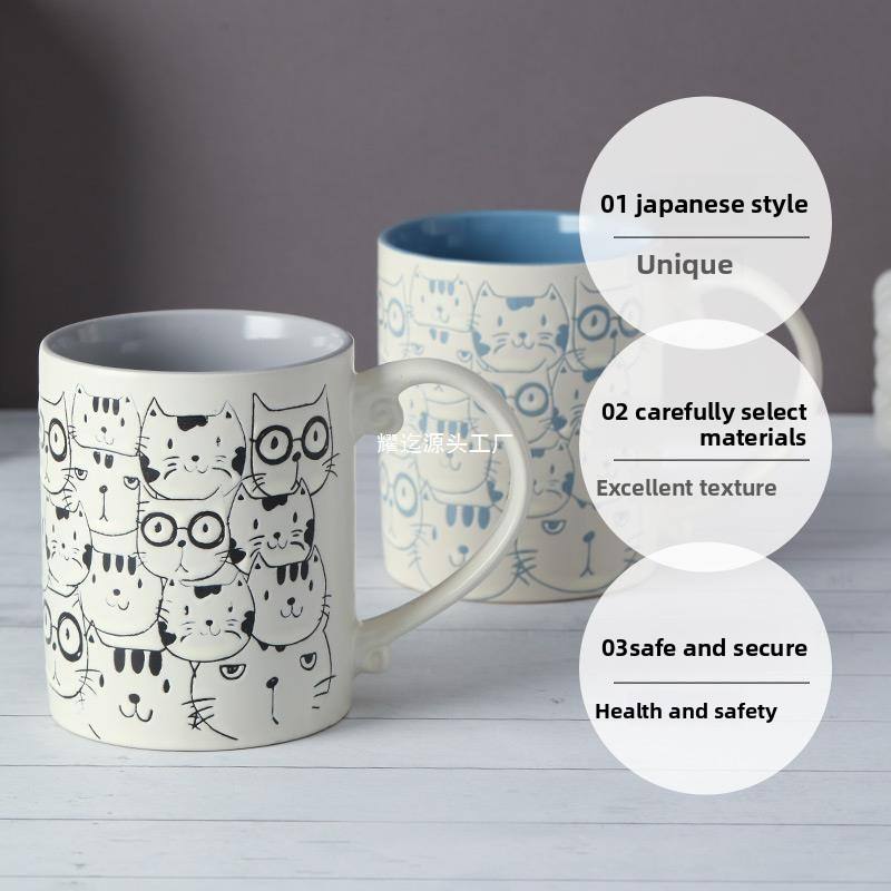 Taza de cerámica Underglaze pintada a mano de dibujos animados lindo gato taza de café desayuno taza de avena pareja microondas Regalo Seguro