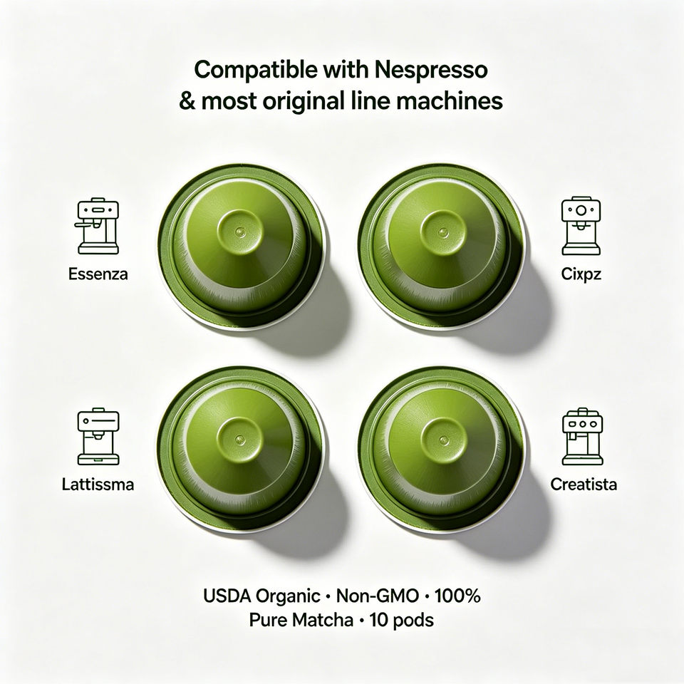 Cápsulas de Café Matcha de Grado Ceremonial Compatibles con Nespresso Original Line, Cápsulas de Té Verde Chino Orgánico