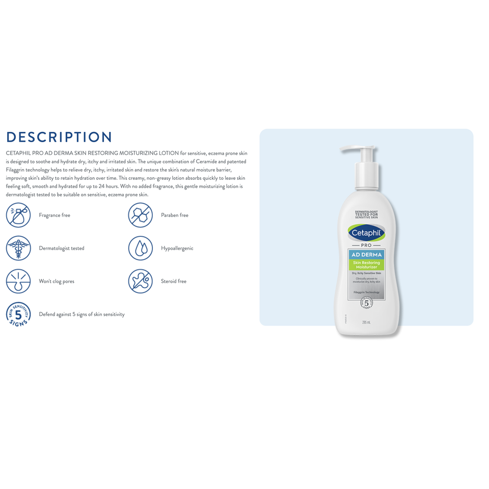 Cetaphil Pro Ad Derma Crema Hidratante Restauradora de la Piel 295ml (Para Eccema)