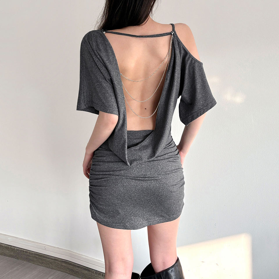 Minifalda plisada sin espalda con cadena, ajustada, de color liso, elegante para el día a día, estilo sexy para chica.