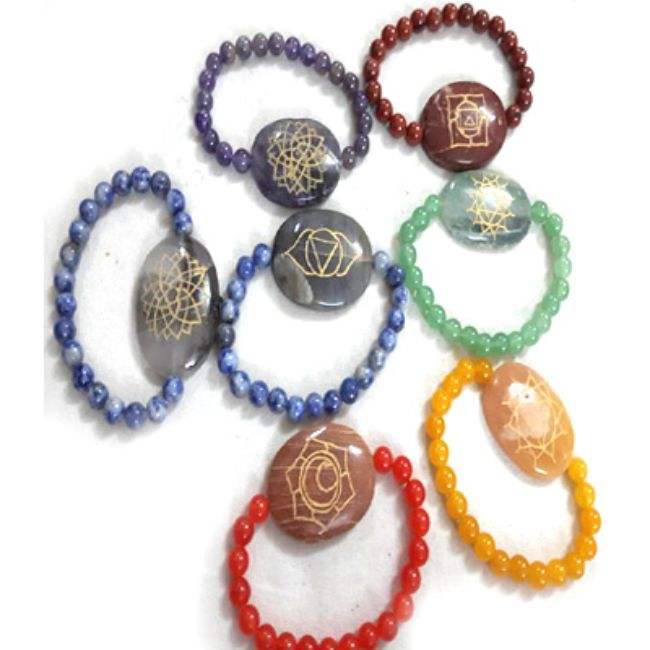 Chakra grabado Reiki pulsera de piedras preciosas:Chakra grabado Reiki pulsera de piedras preciosas