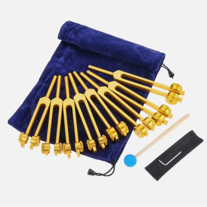 Juego de diapones para chakras, 7 diapones de chakra + 1 diapasón de propósito espiritual con peso para sanación