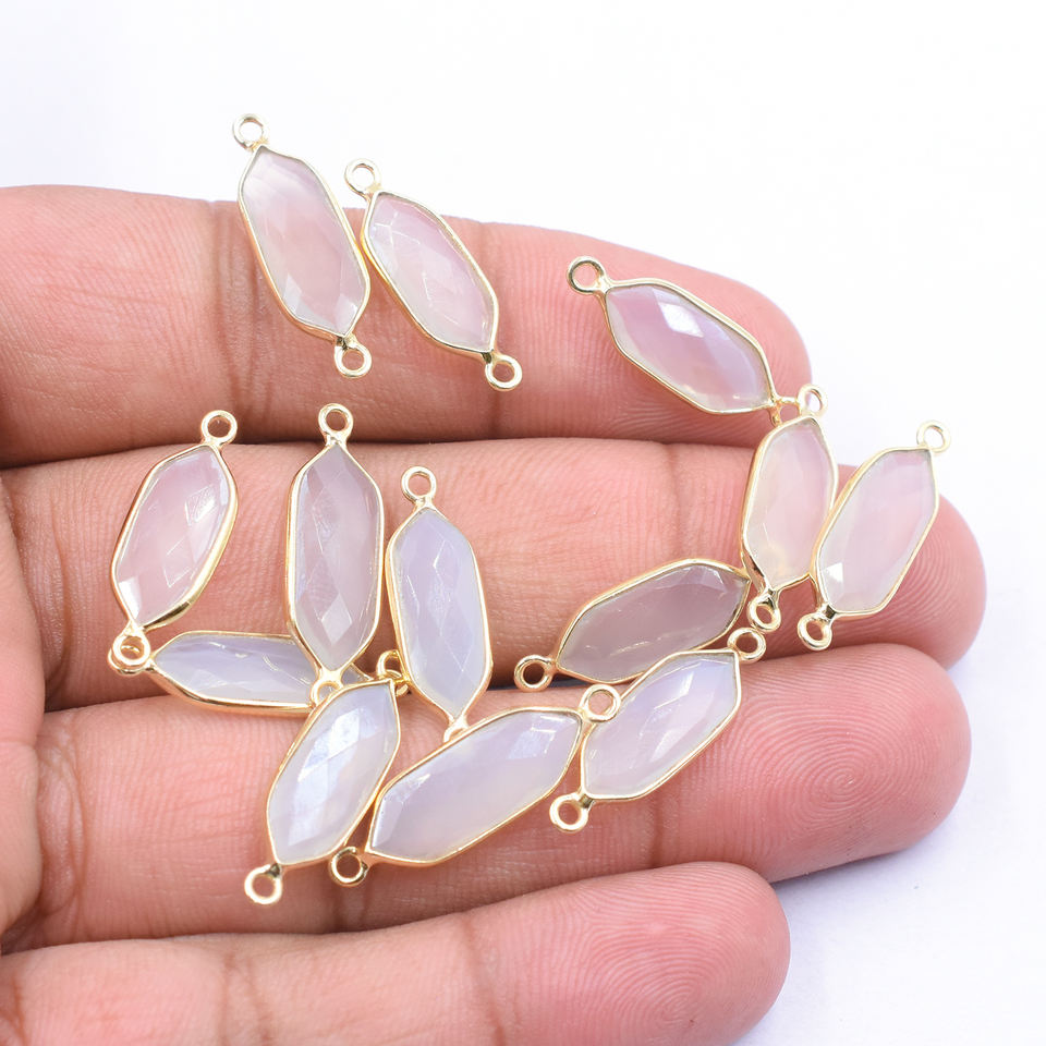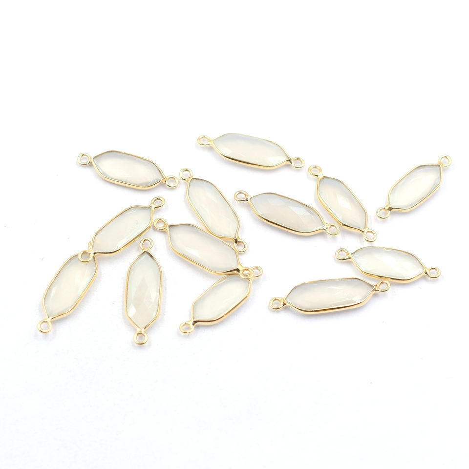 Nombre del Producto:Conector Chapado en Oro con Bisel Plateado y Forma Hexagonal de Calcedonia