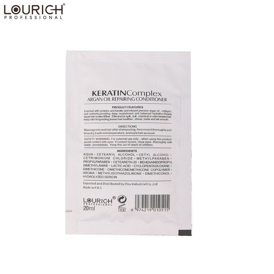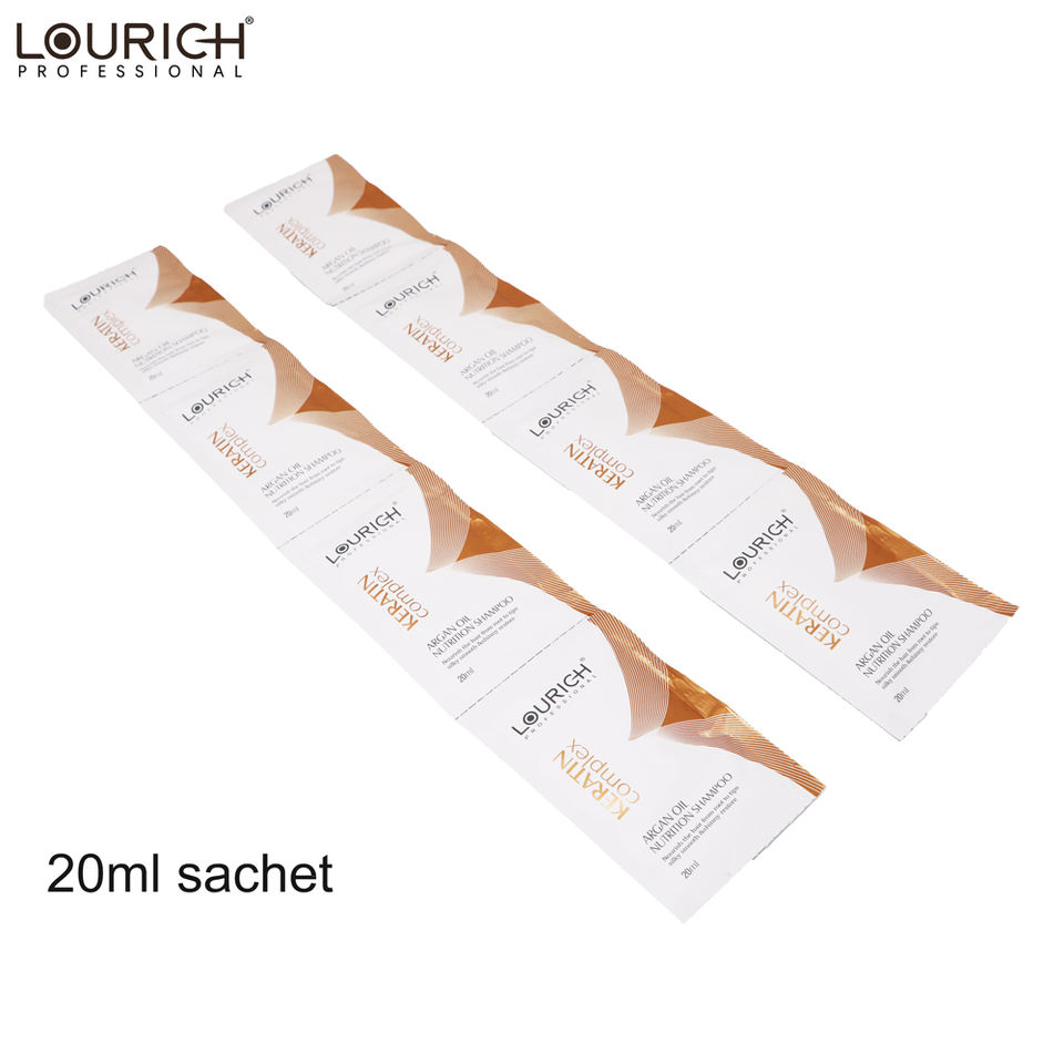 Champú de queratina para hotel, bolsita de 20ml de reparación suave, champú personalizado en bolsita pequeña