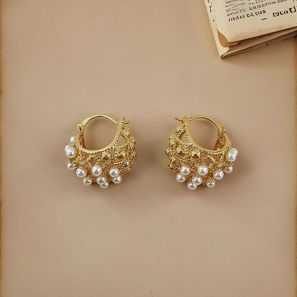Champ De UGood Brass and Zicron Eardrops con perlas incrustadas Chic joyería de oreja de moda para salidas de negocios