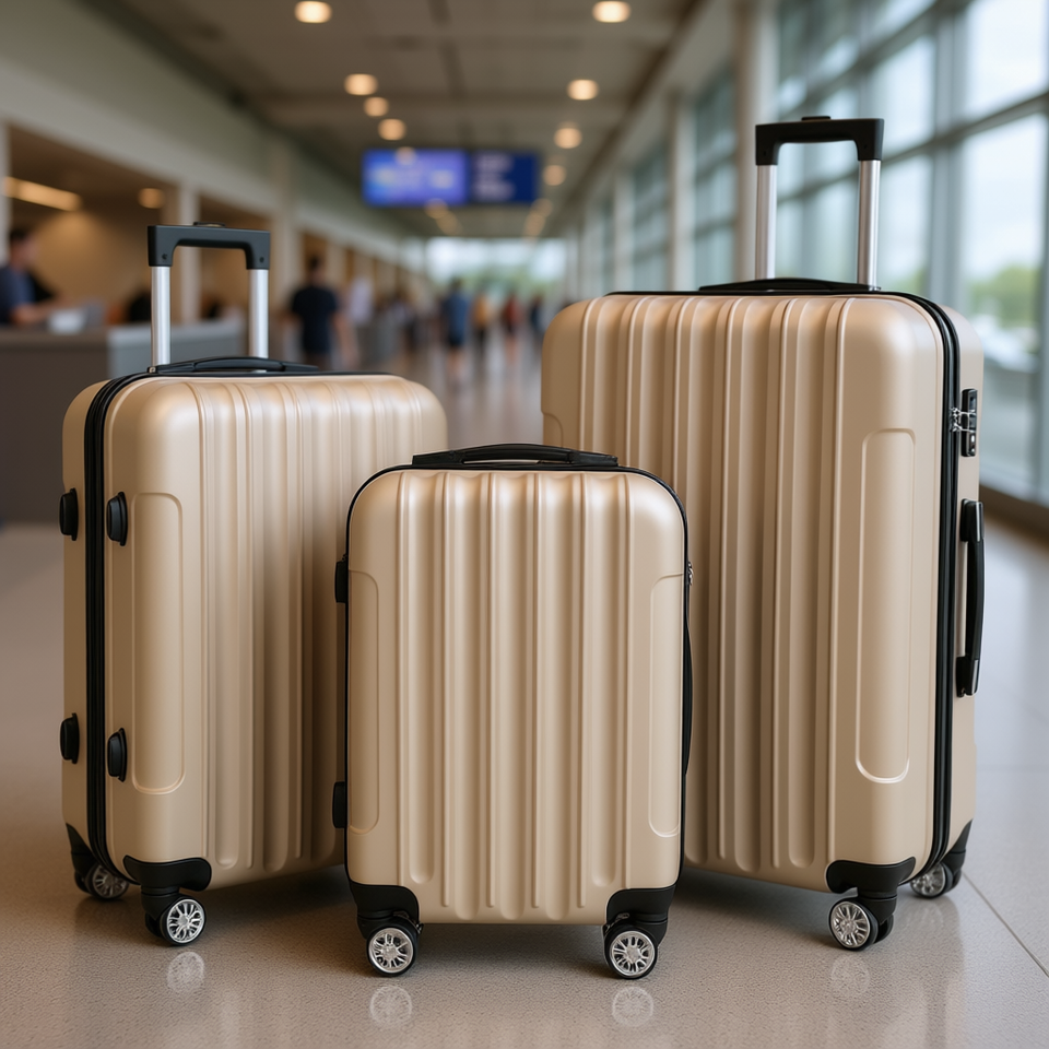 Juego de maletas multifuncional 3 en 1 Champagne con candado de combinación y ruedas para viaje