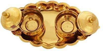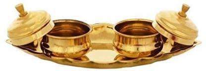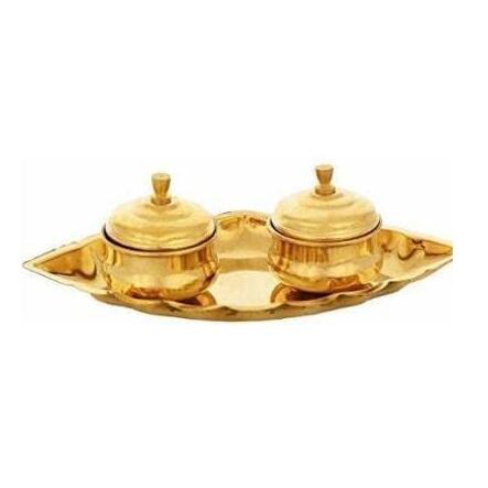 Juego de Chandan Roli/Tika Chopda, Caja de Latón Tallada Moderna de Alta Calidad y Segura para Guardar Chawal Akshat Haldi Dibbi/Kumkum, con Tapa Personalizada