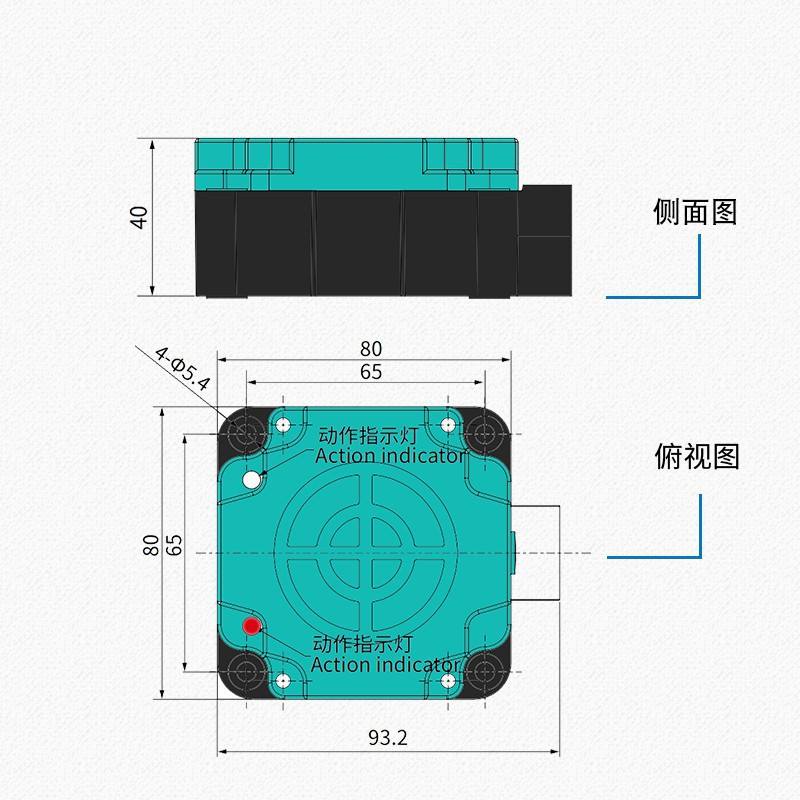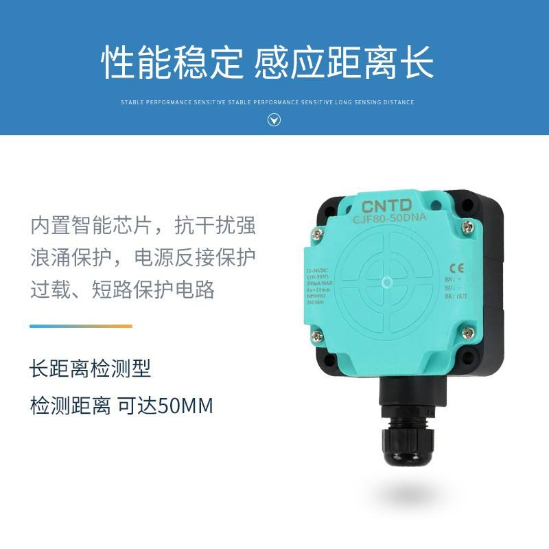 Interruptor de Proximidad Inductivo de Tipo Cuadrado DNA CJF80-50 de Changde CNTD con Distancia de Detección de 80 mm y 50 mm
