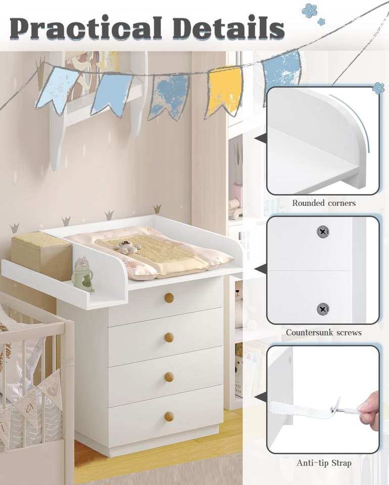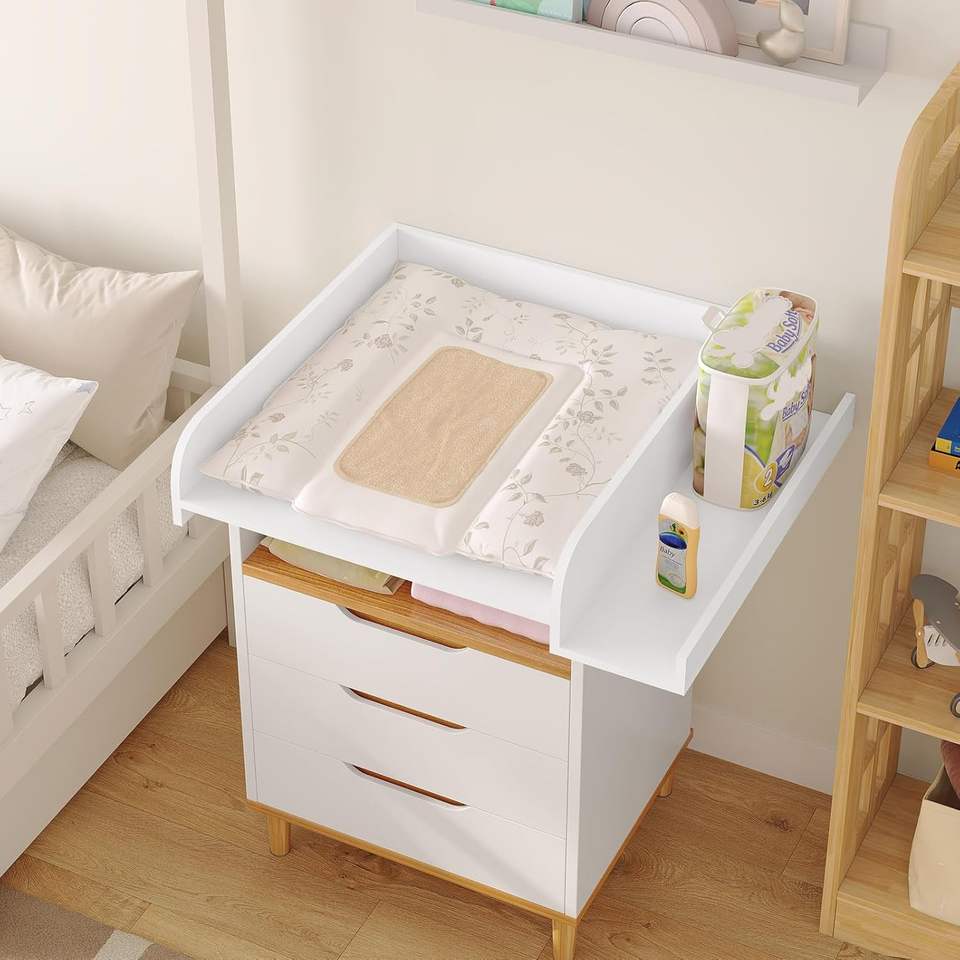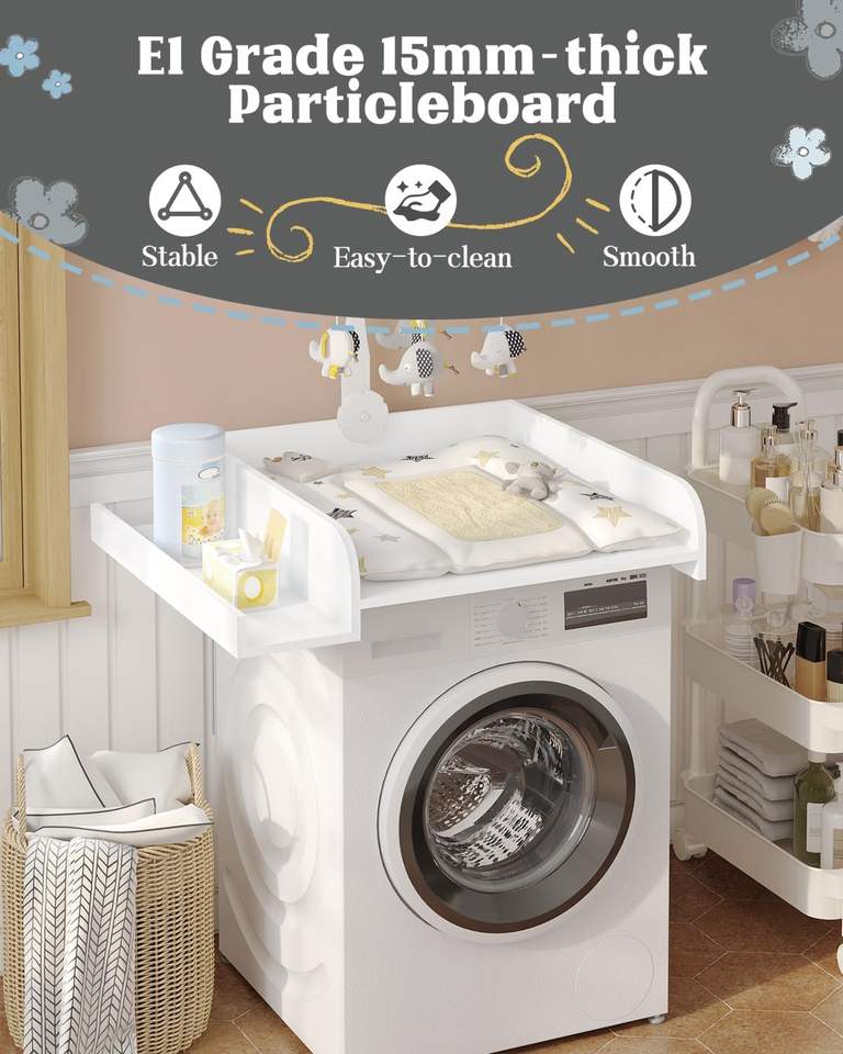Cambiador para lavadora Cambiador con acolchado y estante de almacenamiento Tablero superior Adaptable a lavadora o secadora