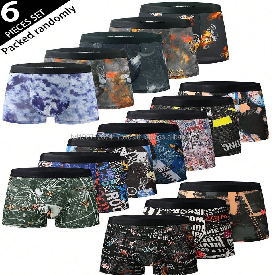 Calzoncillos y bóxers para hombre de fibra de bambú transpirable con estampado de animales, de algodón a cuadros, con spandex, cómodos y de seda helada.