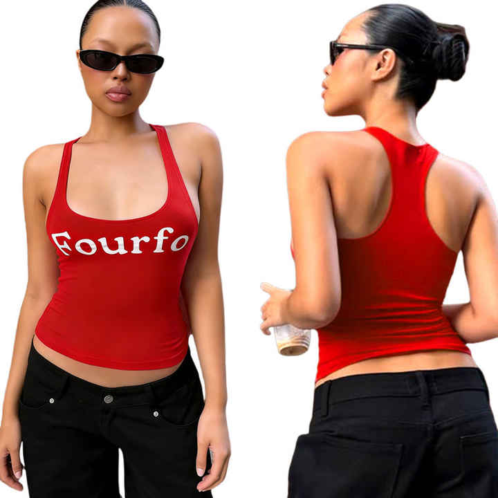 Top deportivo sin mangas con estampado de personajes y lazo rojo, espalda descubierta, cuello en U, de punto transpirable, para mujer, ideal para verano, ¡gran oferta!