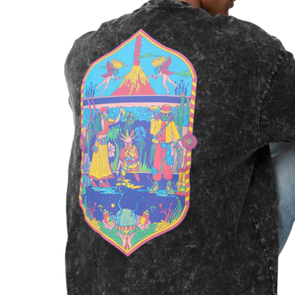 Camisetas de Hombre de Algodón 100% Lavado, Estilo Vintage, Holgadas, Color Negro Carbón, Ropa Urbana Informal, Suave y Transpirable para Uso Diario