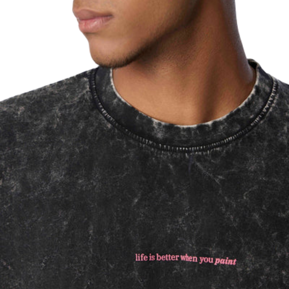 Camisetas de Hombre de Algodón 100% Lavado, Estilo Vintage, Holgadas, Color Negro Carbón, Ropa Urbana Informal, Suave y Transpirable para Uso Diario