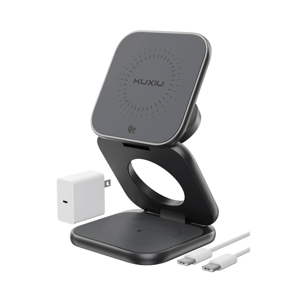 Base de Carga, Cargador Rápido Portátil 2 en 1, Inalámbrico Magnético con Alineación Magnética para iPhone