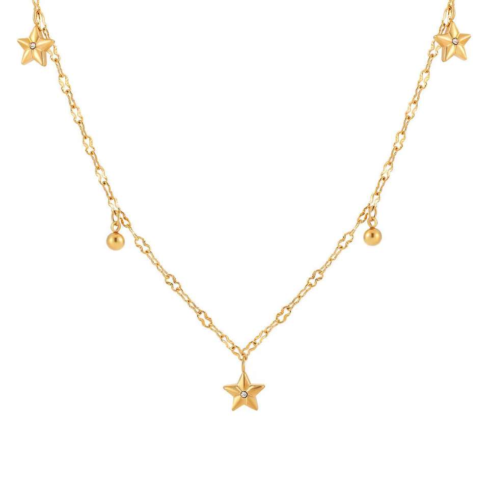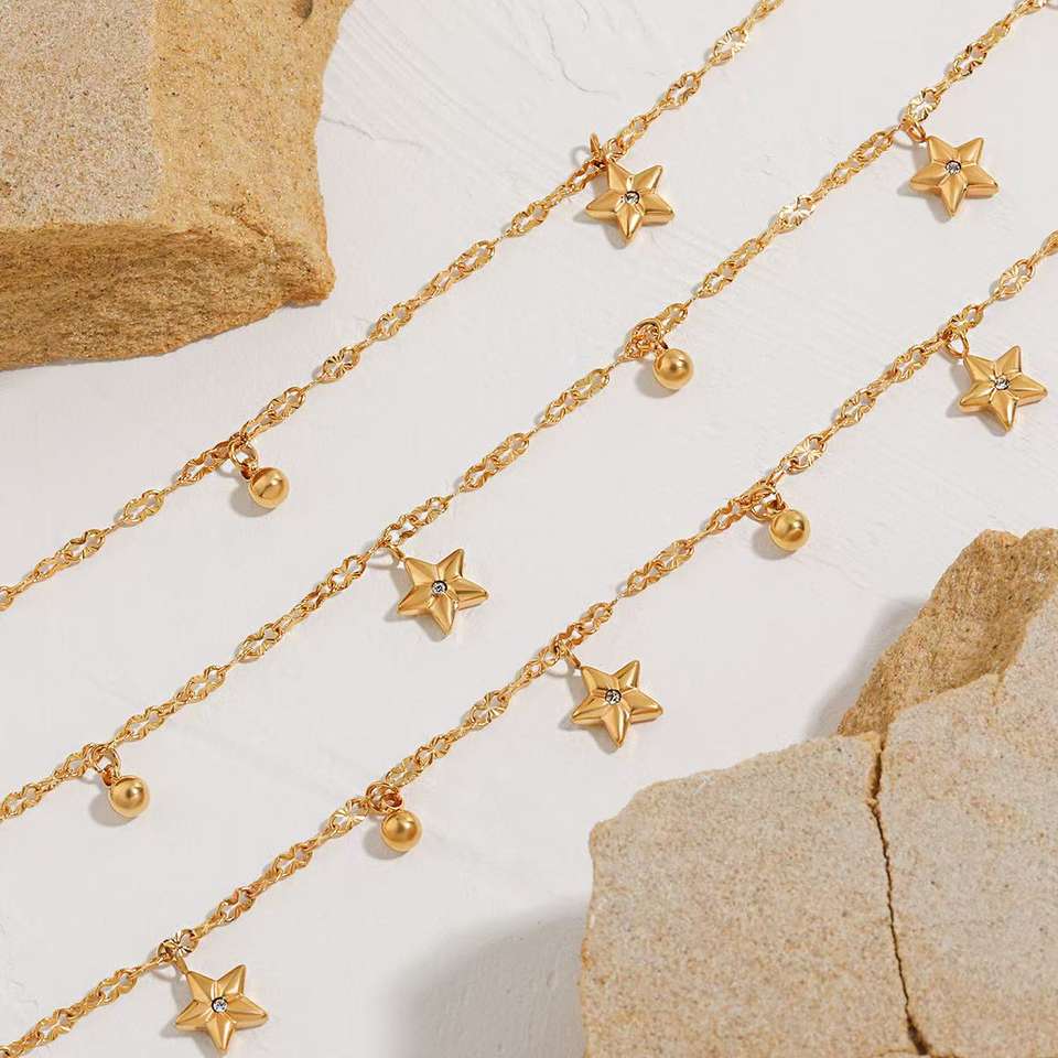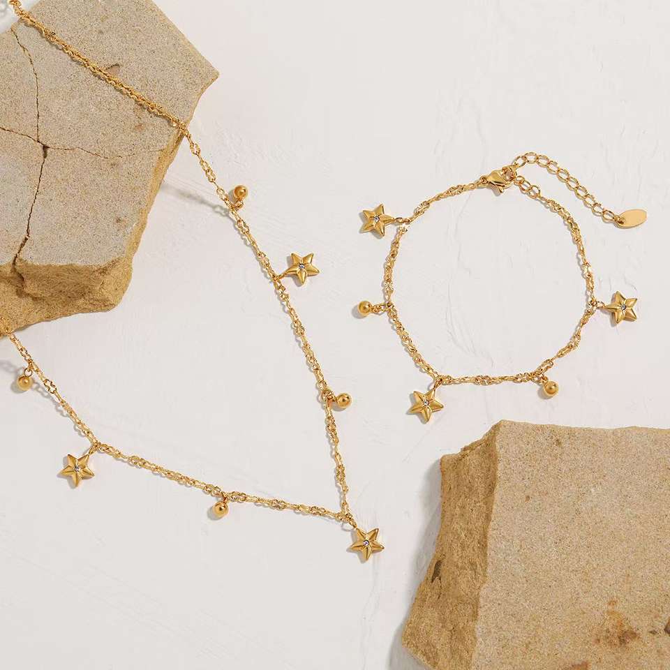 Fábrica de caridad comerciantes 18K chapado en oro estrella de cinco puntas collar pulsera moda Acero inoxidable joyería conjunto para mujer