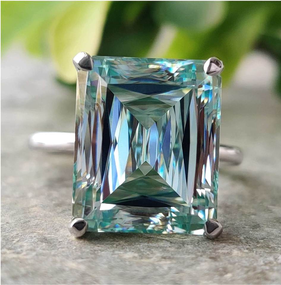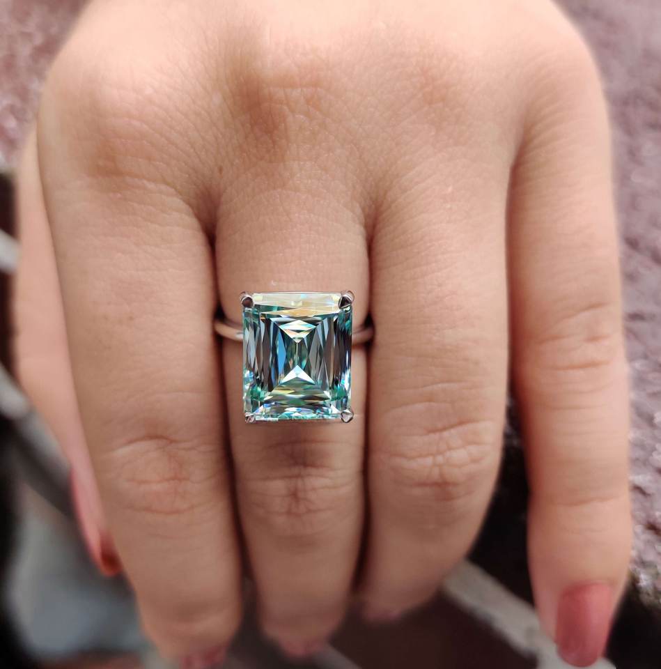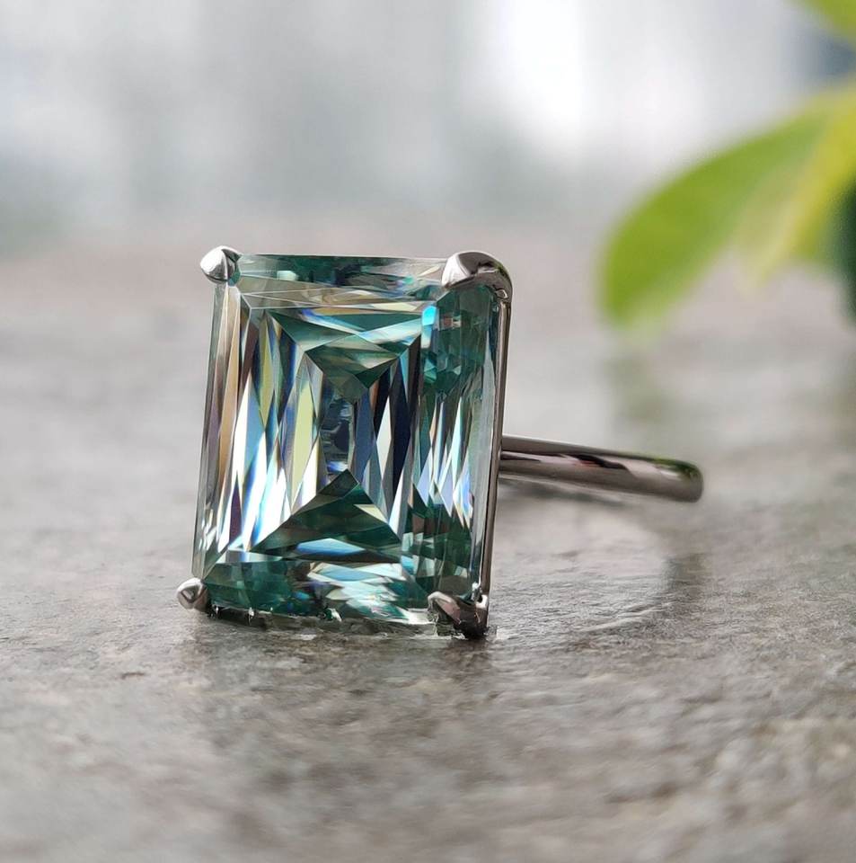 Anillos de Compromiso con Diamantes de Laboratorio con Corte Esmeralda para Mujer, Hechos en Oro Sólido de 10 Quilates