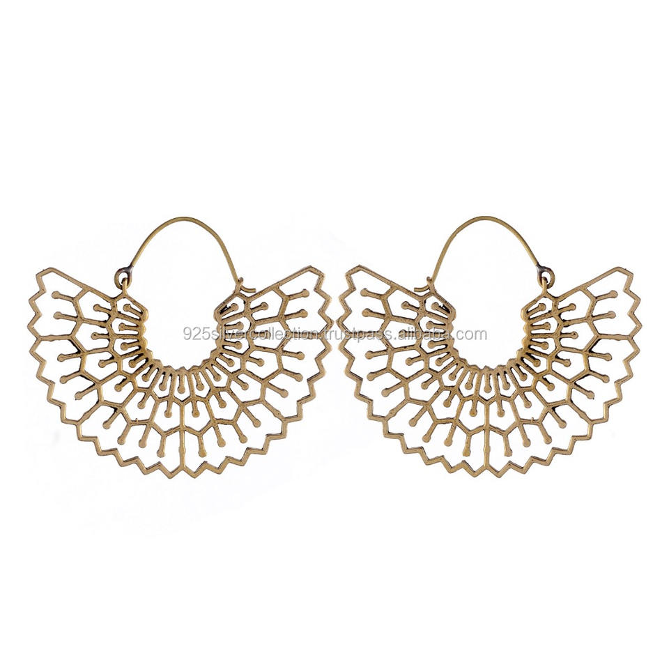 Pendientes de aro de latón puro con diseño de Mandala de flor delicada encantadora joyería de oro maravillosa para fiestas compromisos regalo de moda