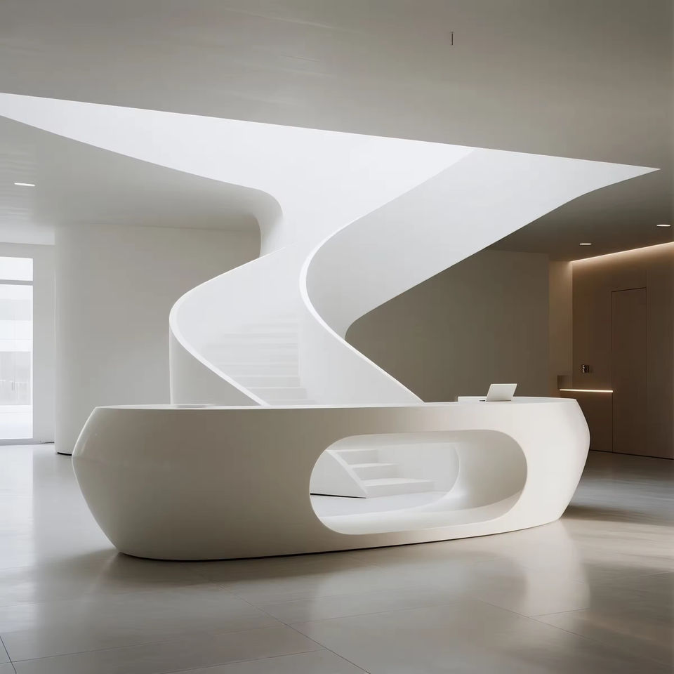 Mostrador de Recepción Encantador Inspirado en Pétalos Rosados con Pared de Logotipo Retroiluminado en Forma de Flor para Salones de Belleza y Tiendas Boutique