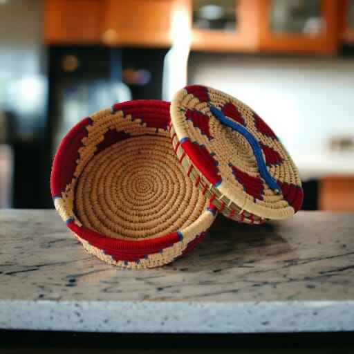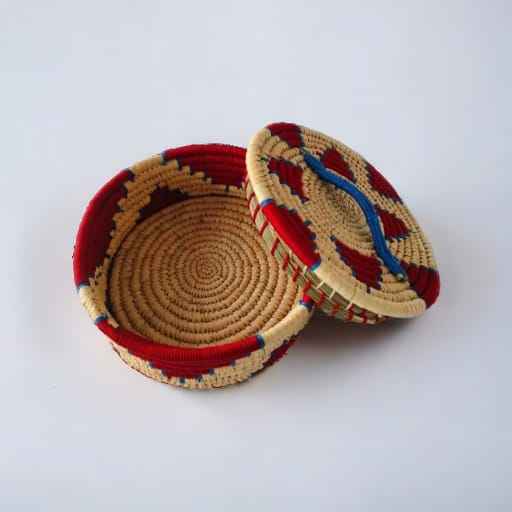 Encantadora, resistente, duradera, Mini cesta de hierba Sabai de mimbre multifuncional con tapa, organización ordenada en Diseño compacto para el hogar