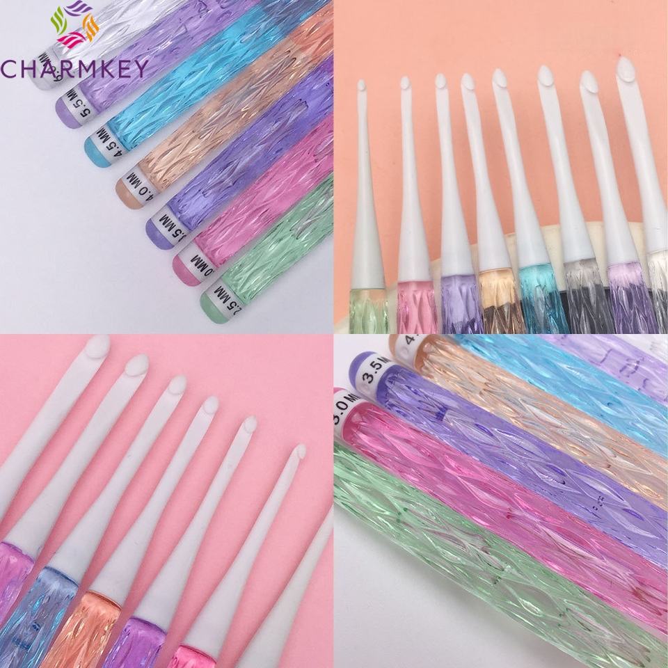 Charmkey Hotsale Candy Color Crystal Plastic antideslizante Tulip Crochet Hook Set Agujas de tejer