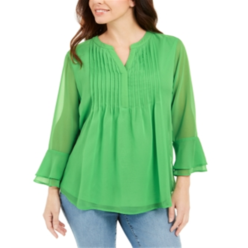 Blusa de Gasa Verde con Doble Volante y Pliegues para Mujer, Talla XL, de Charter Club