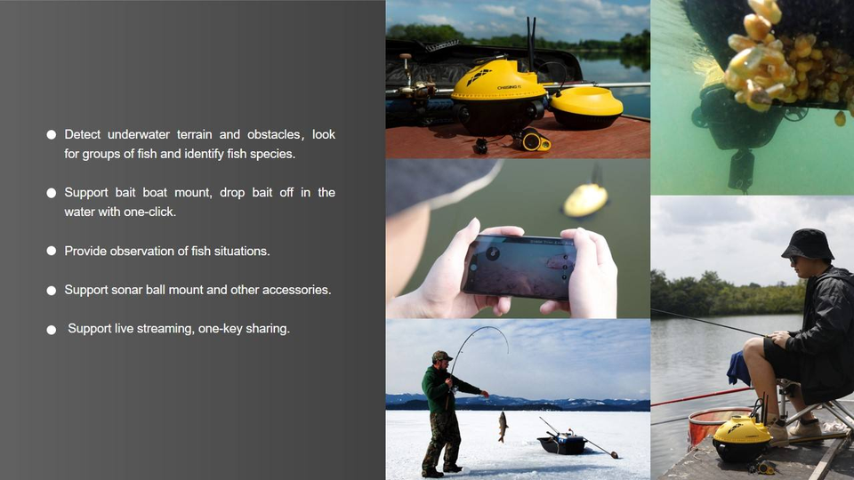 Dron Cuatricóptero Chasing F1 Pro con Sonda de Pesca y Visión 360° ° Cámara Subacuática Giratoria 1080P HD GPS con 6 Horas de Batería y 20 Metros de Profundidad