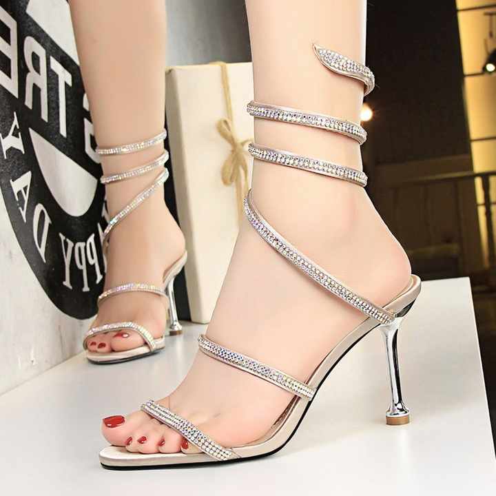 Zapatos de Mujer, Nuevos, Elegantes, con Pedrería, Diseño Sexy, con Correa en el Tobillo, Tacones de Aguja, Sandalias