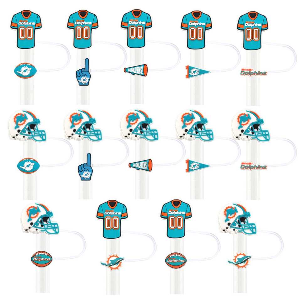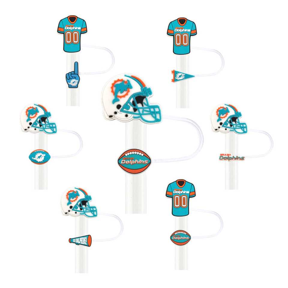 Fundas de Silicona Reutilizables de 10 mm para Pajitas, con Diseño de los Miami Dolphins de Fútbol Americano, para Vasos, Accesorios para Manualidades