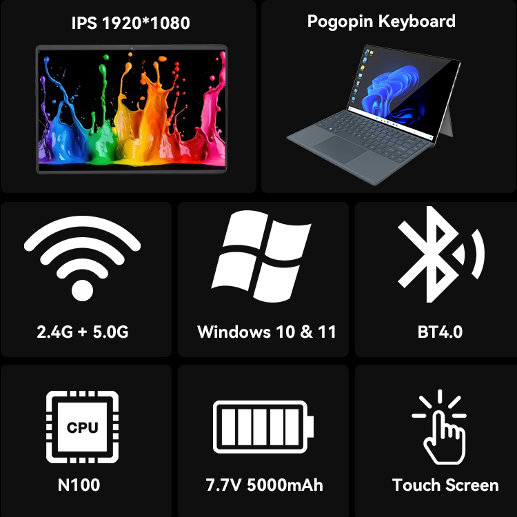 Portátil/Tablet 2 en 1 Convertible de 14 Pulgadas, Económico, con Intel Win 11, 16 GB de RAM, Teclado en Inglés, Procesador de Cuatro Núcleos, 1920*1200, para Juegos