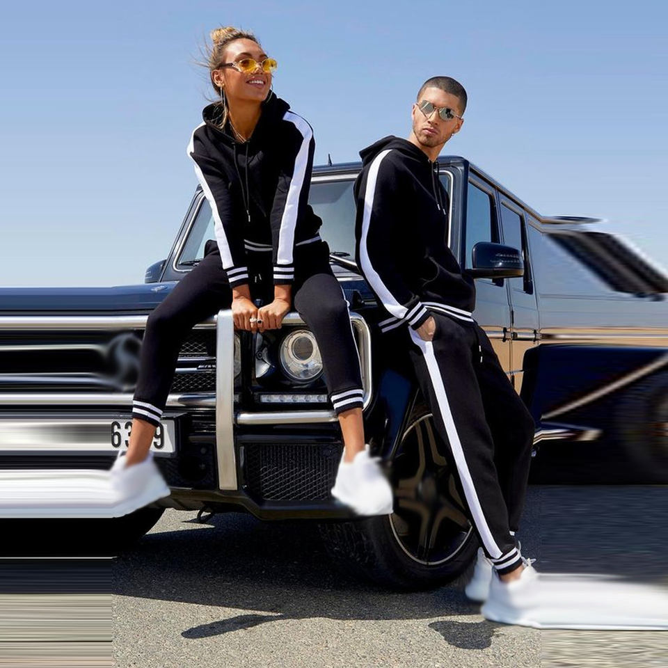 Chándales de rayas laterales personalizados para hombre y mujer, chándal con capucha y cremallera frontal completa, barato, último diseño, 2021