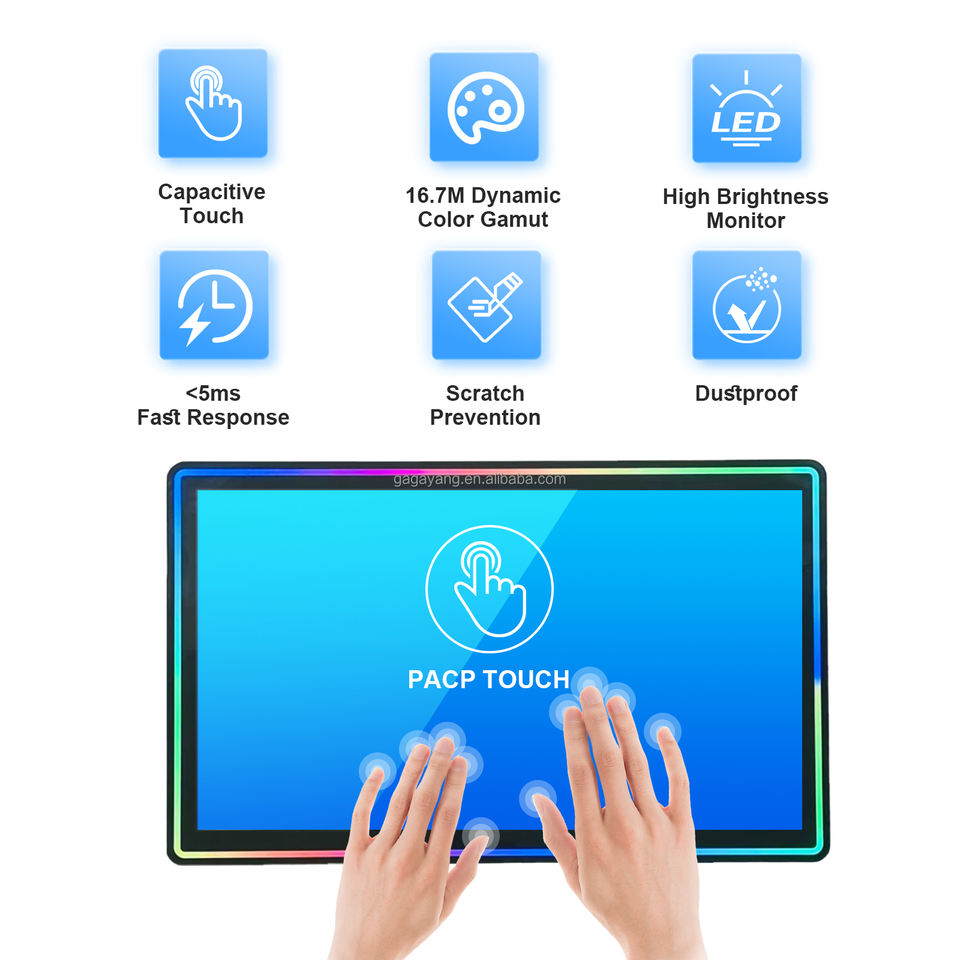 Monitor de pantalla táctil de juego vertical con luz LED de bisel de aluminio capacitivo barato de 27 pulgadas a la venta