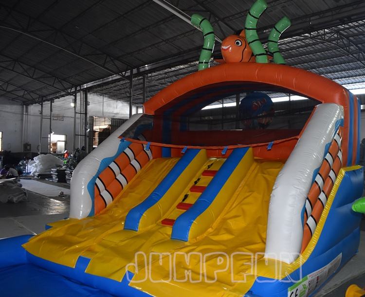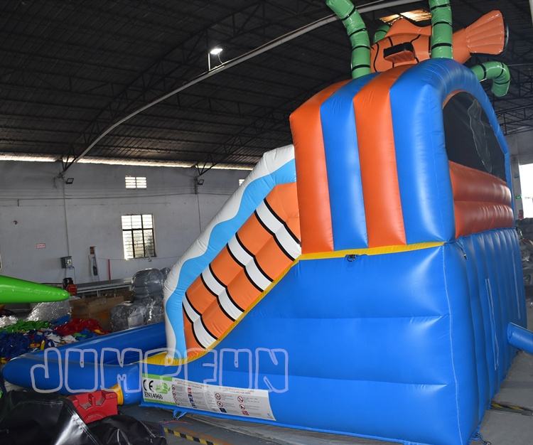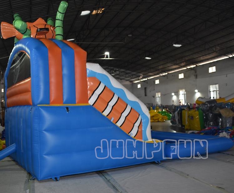 Tobogán inflable barato de 5,8x4,3x4 metros y piscina de agua para niños juegos de patio de verano inflar tobogán húmedo divertido tobogán acuático de pez payaso
