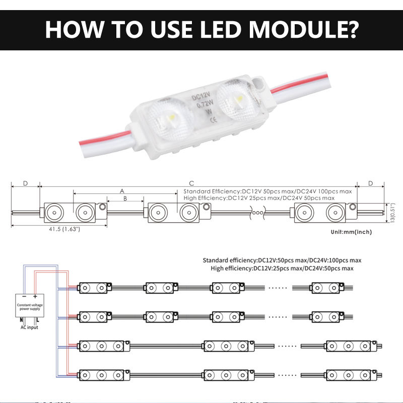 Nombre del producto:Módulo mini LED DC12V 2 leds, módulo de tamaño delgado para mini letrero