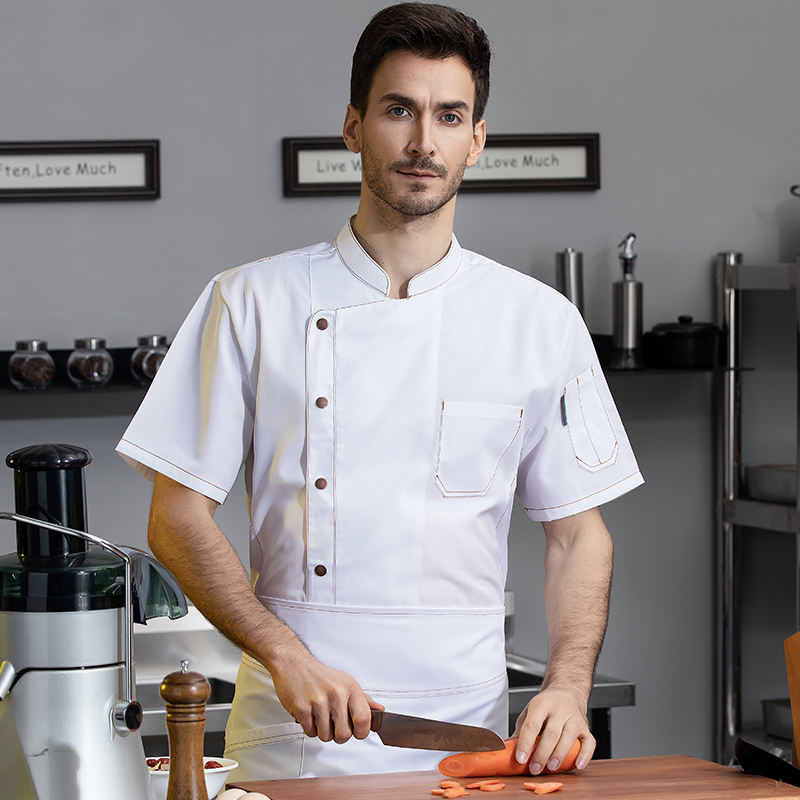 Camisa de uniforme de Chef barata para uniforme de personal de restaurante uniforme de Chef Sexy de manga corta para mujer