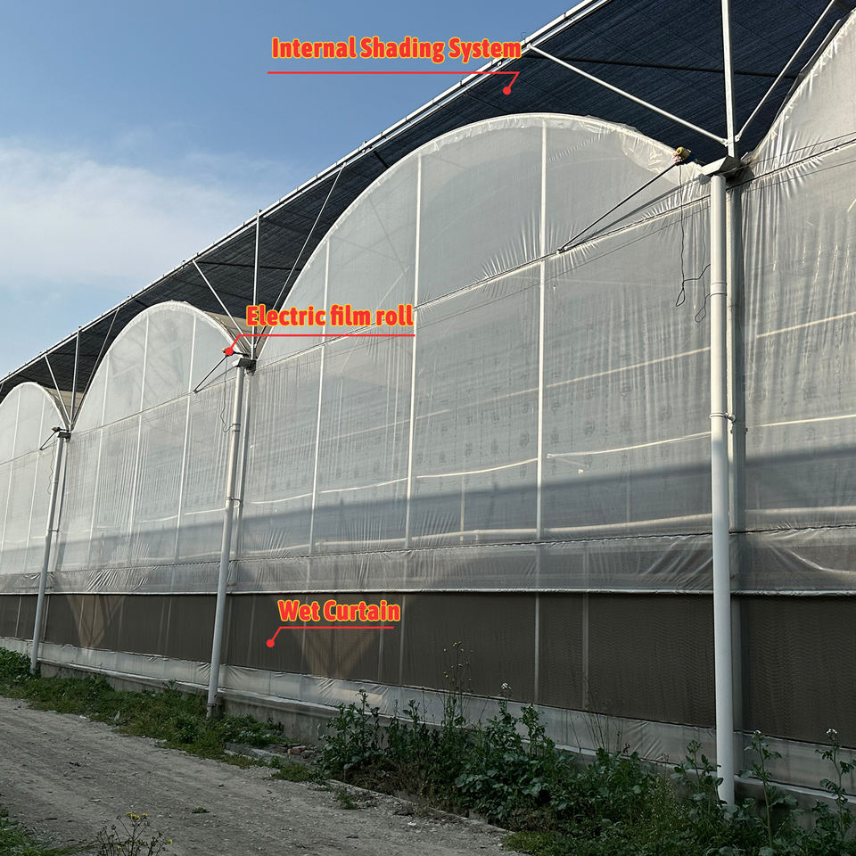 Invernaderos Acuapónicos Comerciales Usados de Gran Tamaño y de Una Sola Vía con Película de PE para Estanques de Peces y Producción de Vegetales