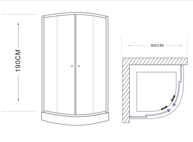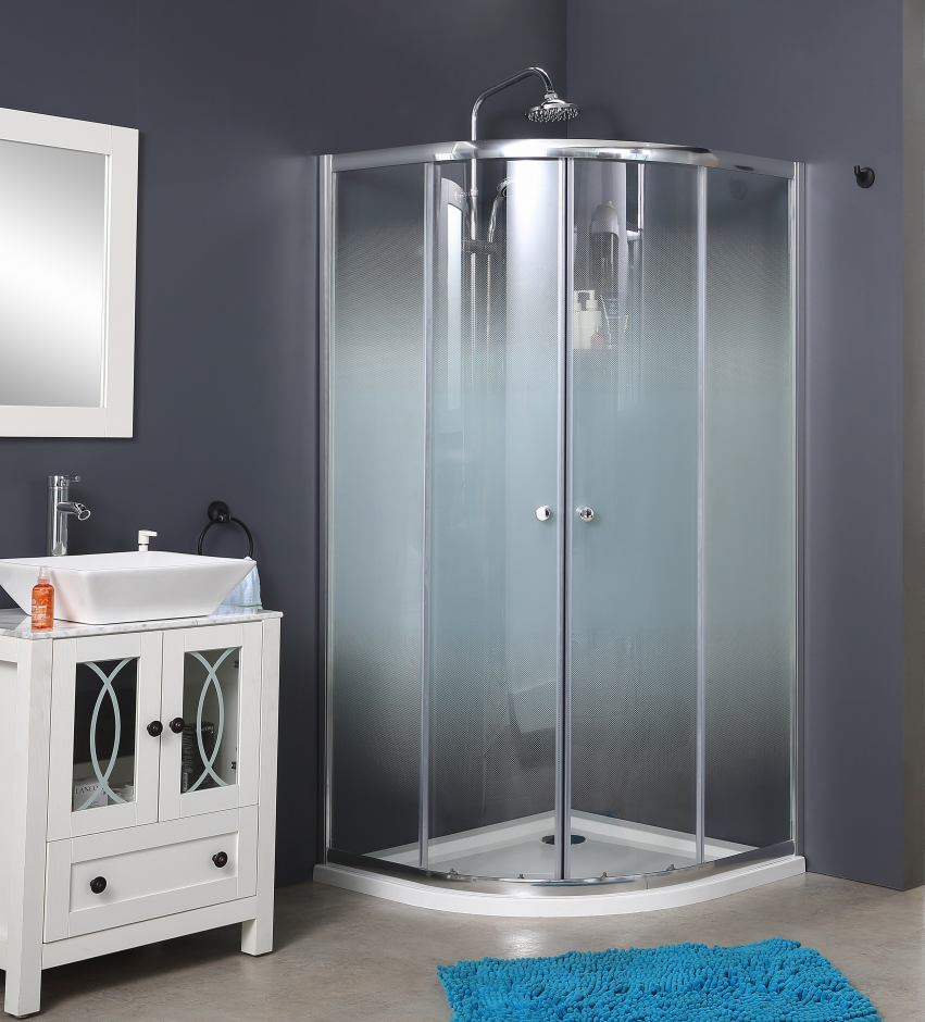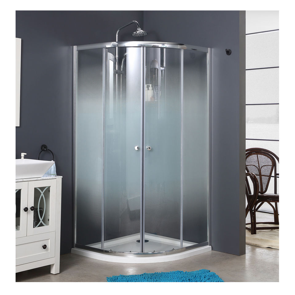 Mampara de ducha cuadrante económica y competitiva con puerta corredera de vidrio 4 mm, diseño impreso, perfiles cromados ajustables para pared, 80×80×185 cm