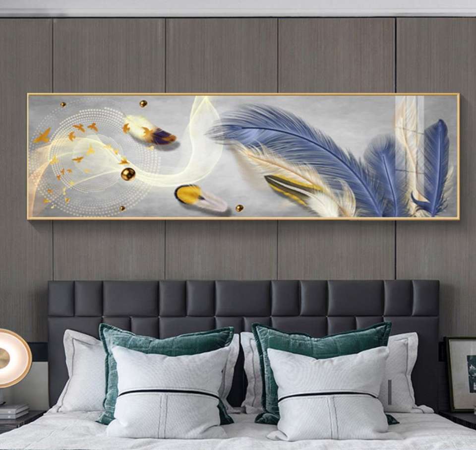 Pintura de cristal barata para pared de habitación, diseño abstracto fácil, arte de plumas, pinturas decorativas