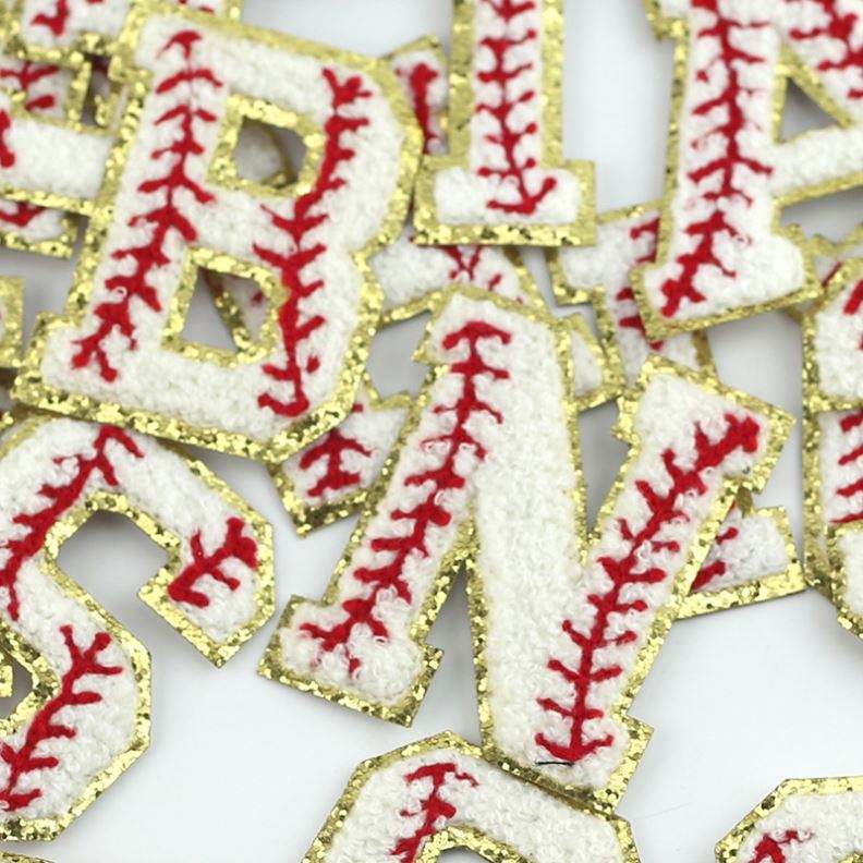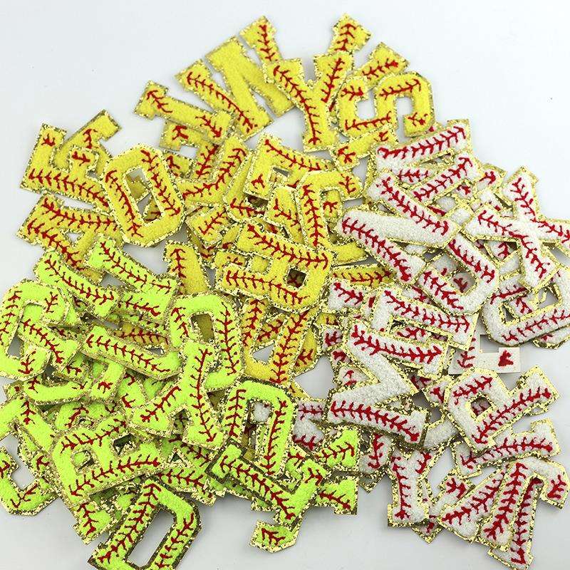 Parches de Letras de Chenilla con Borde Brillante de 7CM, Bordados Personalizados y Económicos, con Diseño de Béisbol