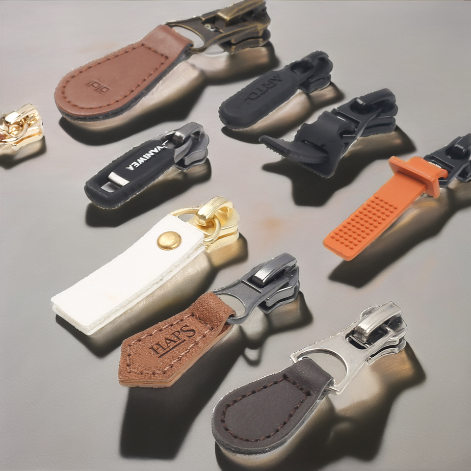Logotipo Personalizado Económico 3 # 5 # 8 # 10 # Tirador de cremallera de cuero de vaca, piel de cerdo, cabretta y PU, pintado, con bloqueo automático y sin níquel, para