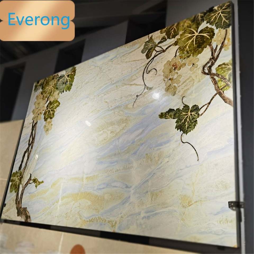 Diseño de interiores personalizado barato, pared de mármol, patrón de uva botánico, mármol de chorro de agua para pared y suelo, mármol personalizado
