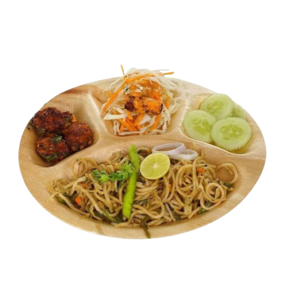Barato desechable de alta resistencia Areca 4CP bandeja de comida/plato ecológico para cumpleaños eventos comida servir cantina escuela