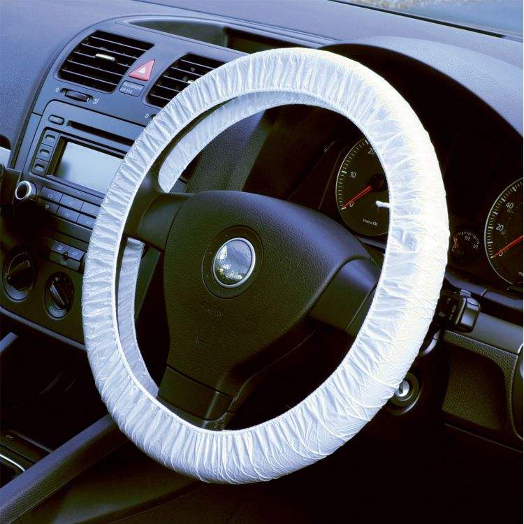 Funda Desechable Económica para Volante de Coche de Plástico LDPE Transparente en Color Blanco