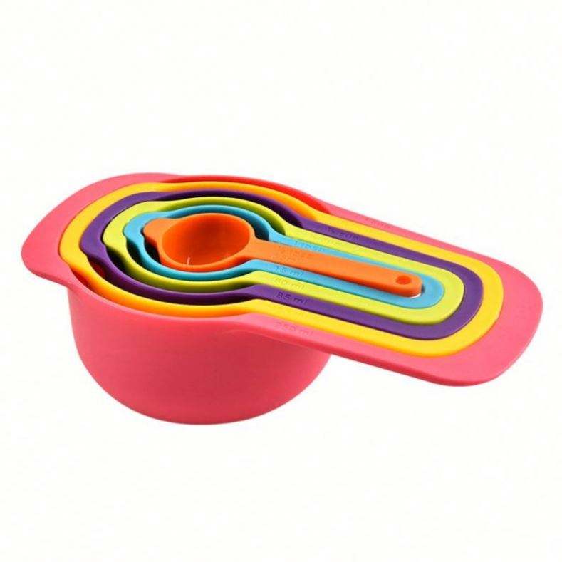 Juego de 6 Cucharas y Tazas Medidoras de Líquidos de Plástico PP Multicolor Arcoíris, Económicas y Ecológicas para la Cocina