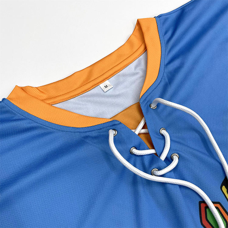 Camiseta de hockey sobre hielo azul del equipo sublimado personalizado europeo barato