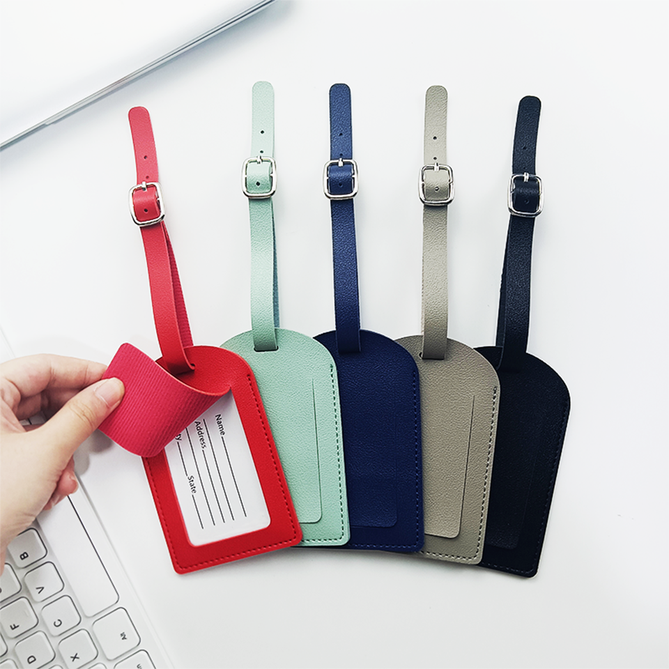 Precios de fábrica baratos Logotipo personalizado Protección DE PRIVACIDAD Etiquetas de identificación de equipaje Etiquetas de equipaje de cuero suave
