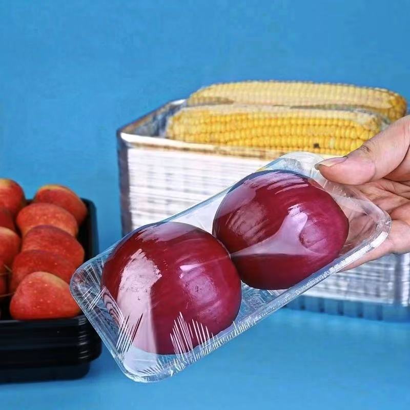 Plástico desechable de grado alimenticio barato PET frutas y verduras frescas Punnet Blister plástico cebolla Chile bandeja embalaje