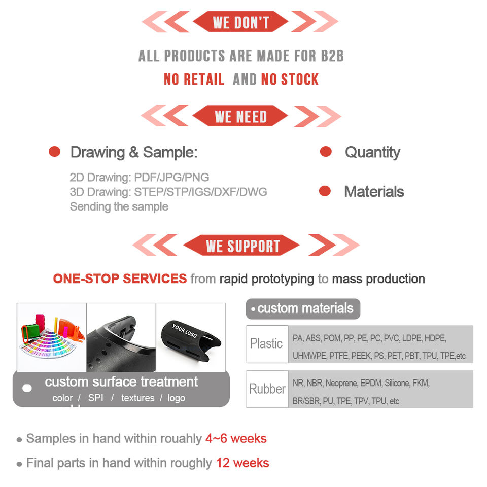 Nailon, nailon MC, POM, ABS, PU, PP, PE, PTFE, UHMWPE, HDPE, LDPE, PVC, etc.