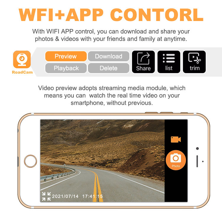 Cámara para Tablero de Instrumentos Delantera Económica con Wifi, GPS, DVR para Automóvil, Video en Vivo, Aplicación de Control, Dispositivo de Rastreo para Vehículo